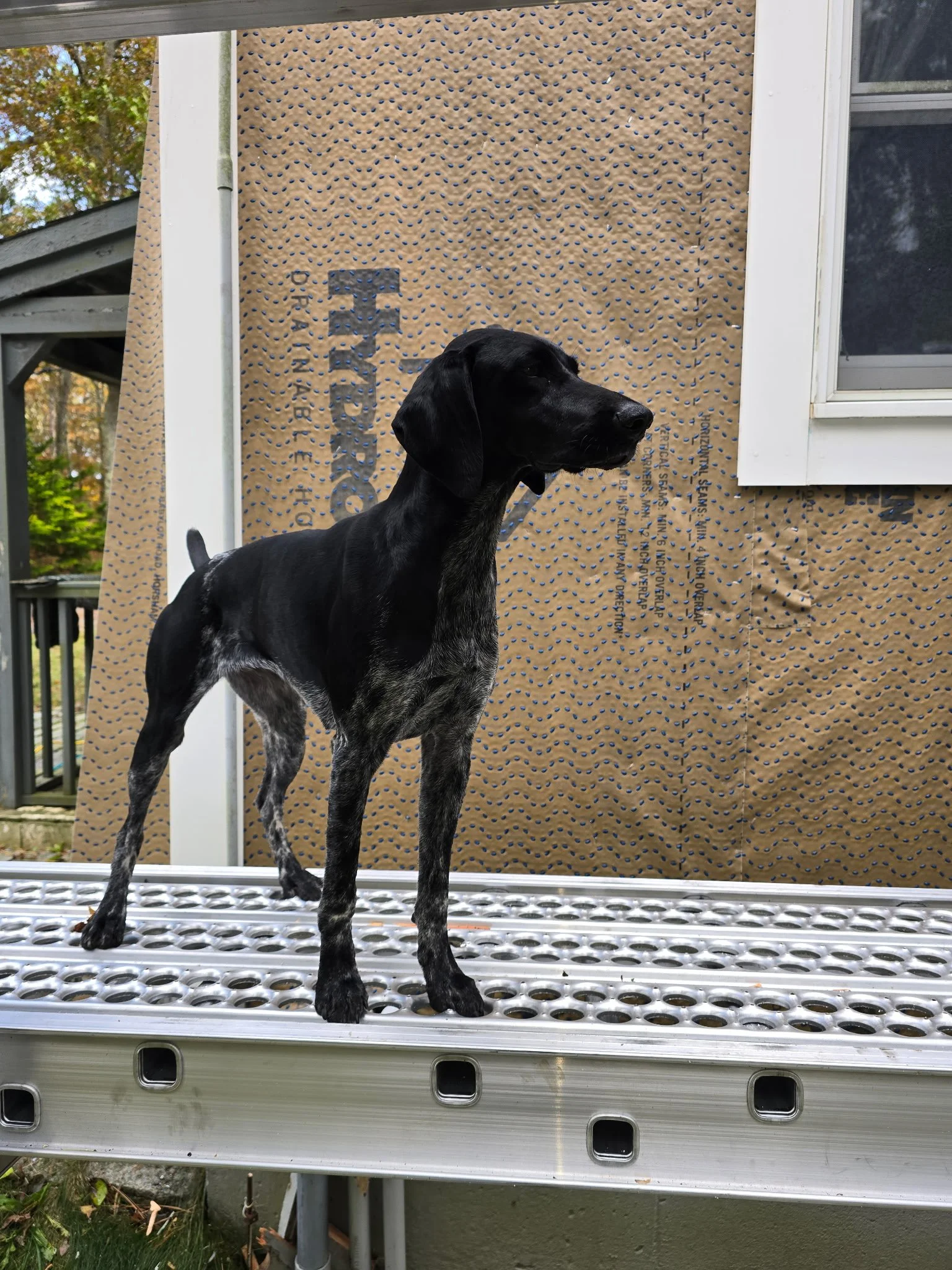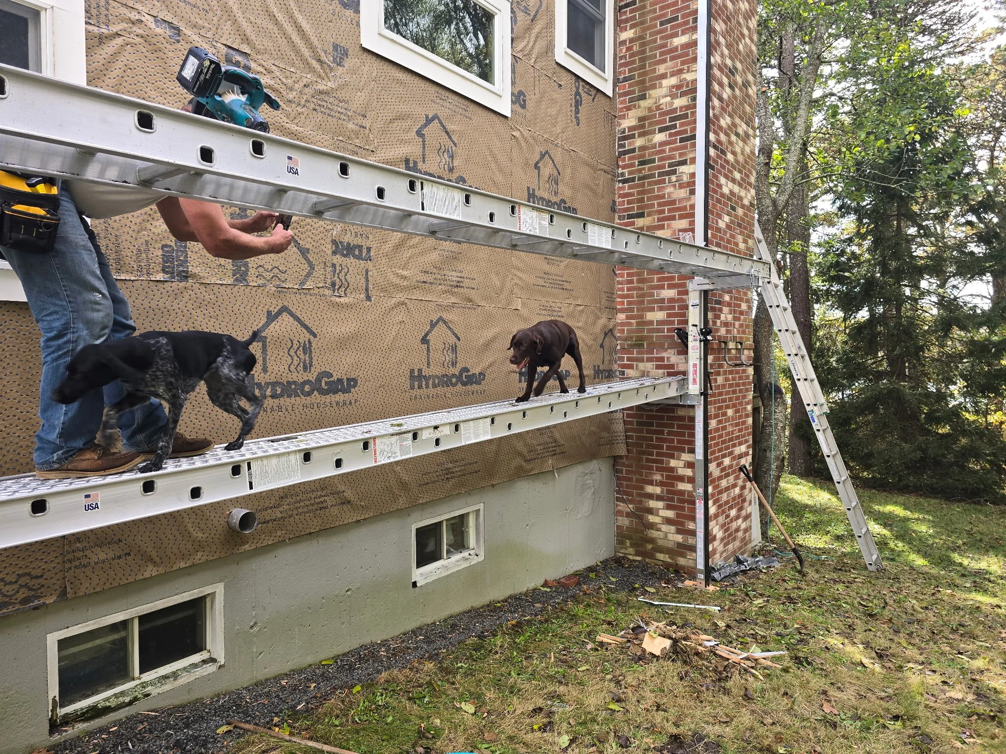 Maple, a German Shorthaired Pointer with the energy of a small hurricane, arrived ready to supervise. Weezie, a lovable Labrador with a college-level talent for snack detection, took a more relaxed approach to jobsite leadership. Together, they turned a routine carpentry project into a full-scale dog-powered operation.